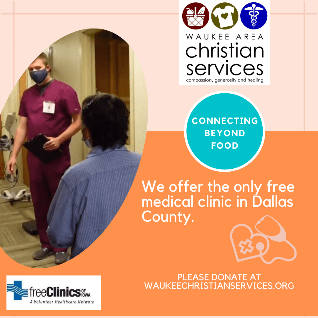 Our mission is to provide compassionate, practical care to greater Des Moines’ west side, offering food and medical assistance to those struggling to make ends meet. Your support will ensure these initiatives make a lasting impact in our client’s lives.  Â